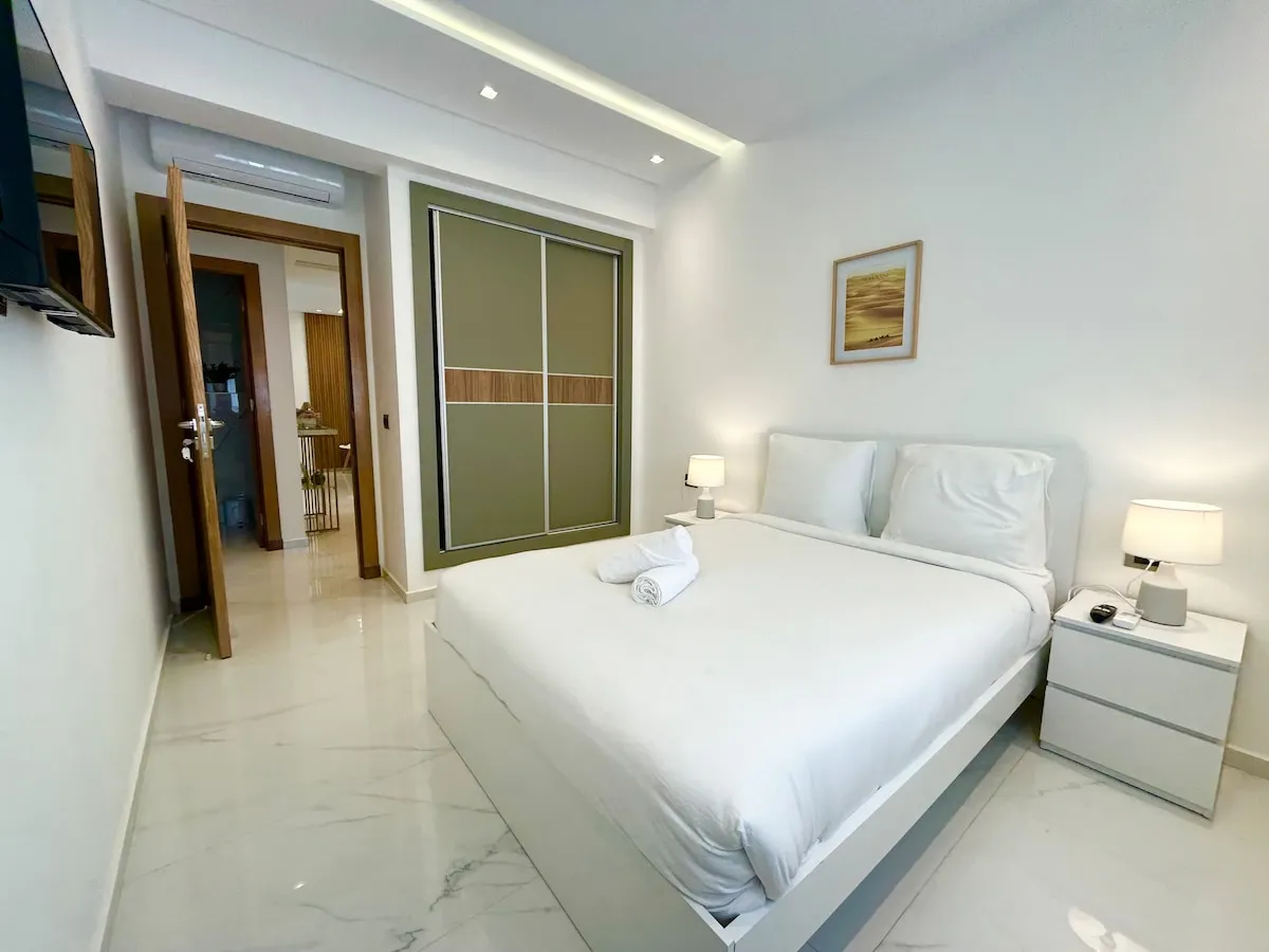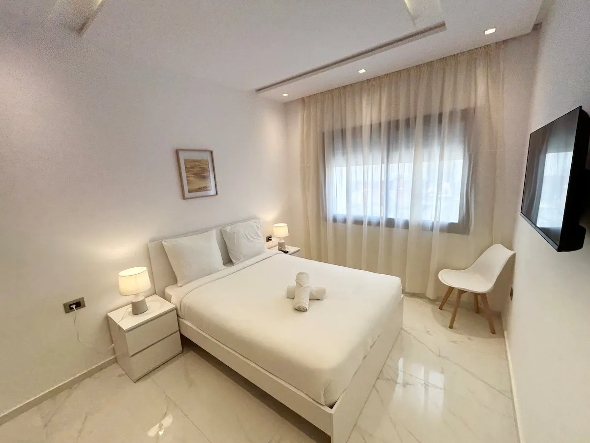 L’appartement se situe au coeur du centre-ville, à proximité immédiate de la plage et de la MarinaBay, à 15 min à pied de la gare TGV et du port Tanger Ville.
