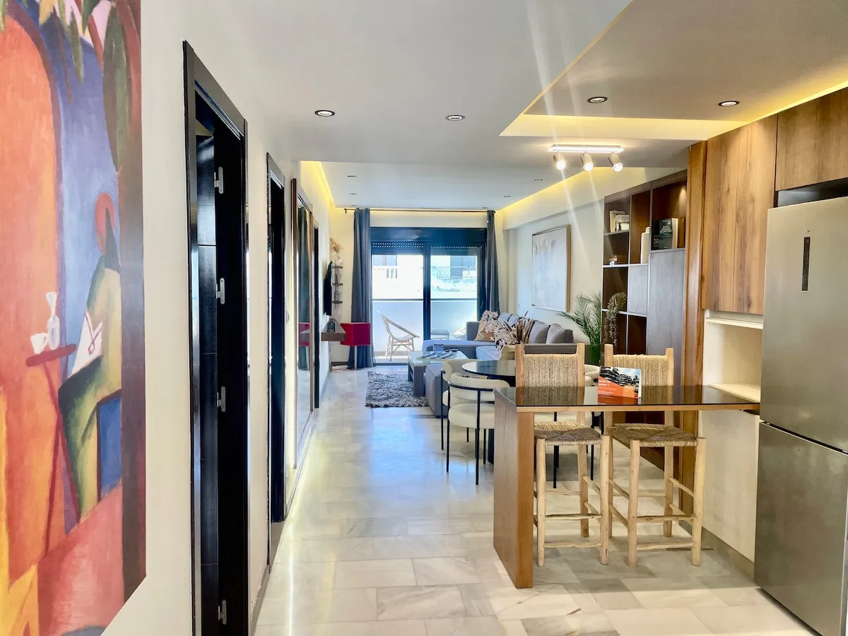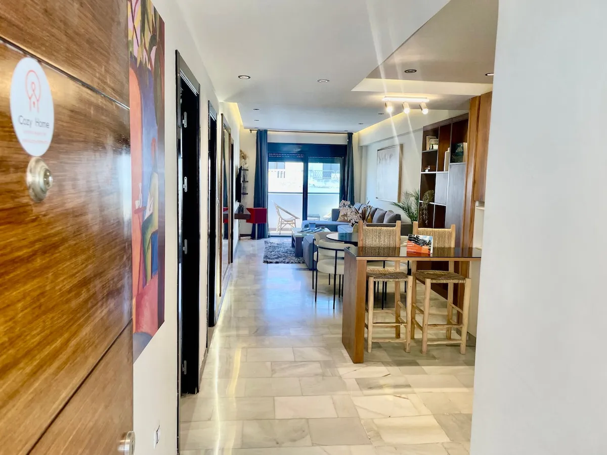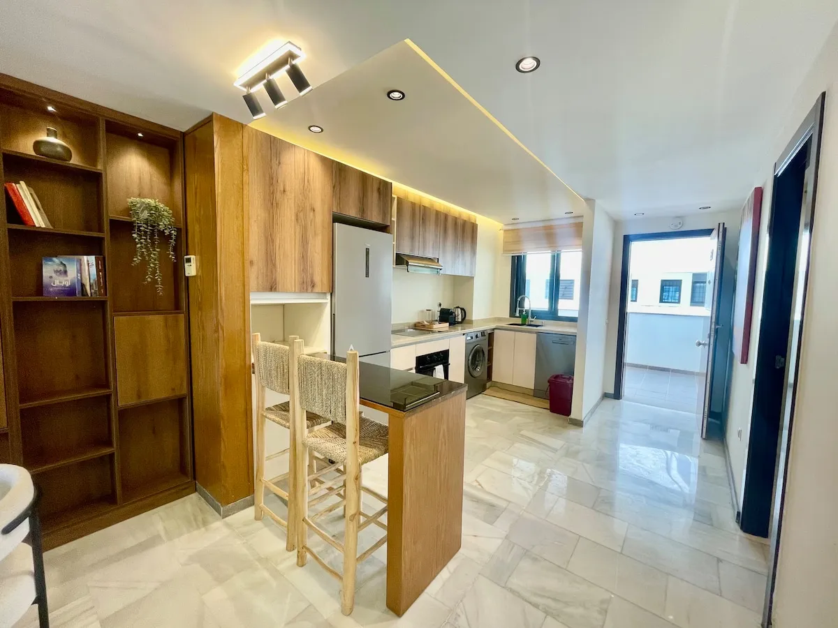 Découvrez une expérience unique à la corniche de Tanger. Ce superbe appartement de deux chambres, doté de 2 salles de bains, d’une cuisine design, et d’une terrasse avec vue sur la mer, offre un confort incomparable. Parfaitement situé au centre-ville, à proximité de Marina Bay, et à 10 minutes à pied de la gare TGV, du port, et de la Médina historique. Entièrement aménagé pour un séjour mémorable, où élégance et praticité se rencontrent avec harmonie.