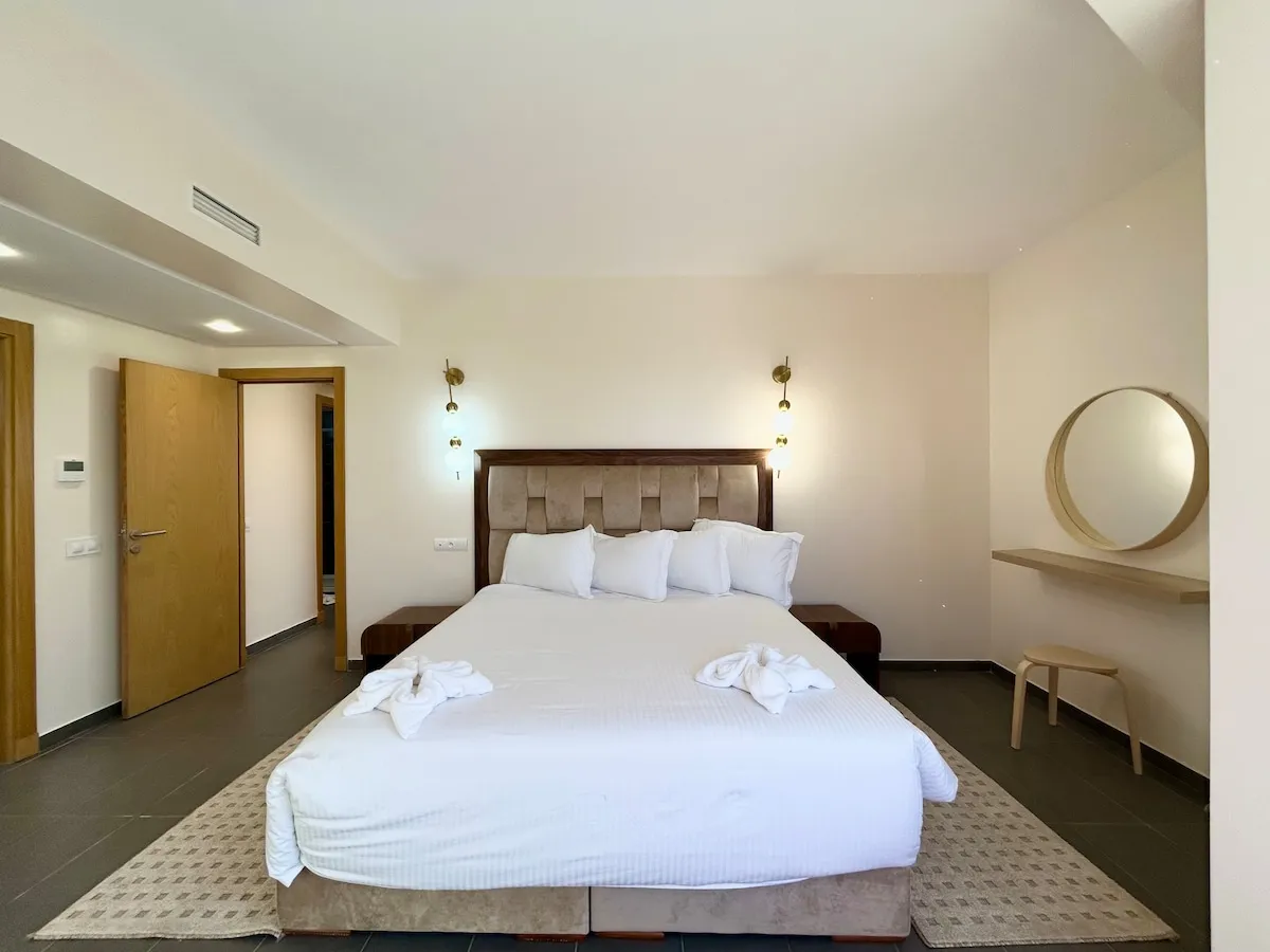 – Chambre 1: Une suite avec lit King Size 2 places, dressing et salle bain attenante avec baignoire.