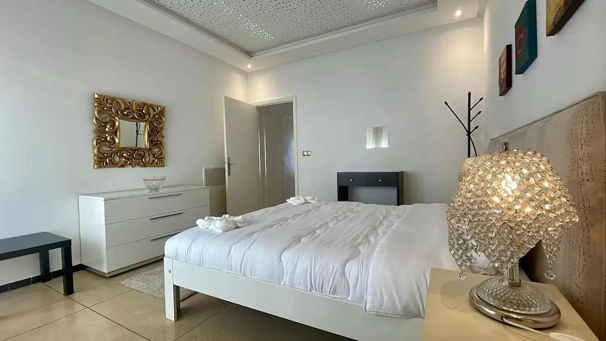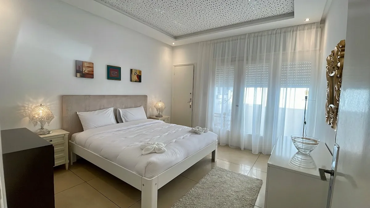 Idéalement situé, à 2 minutes à pied de la plage et de la Marina de Tanger et à proximité de la médina, du grand boulevard de Tanger et du centre commercial Ibn Battuta, c’est l’endroit parfait pour les familles avec tout le confort nécessaire!