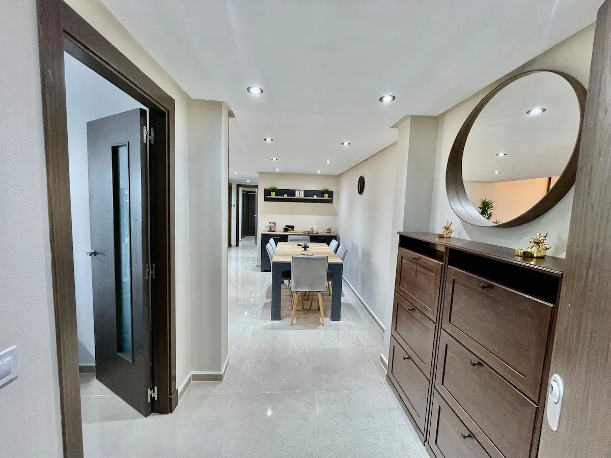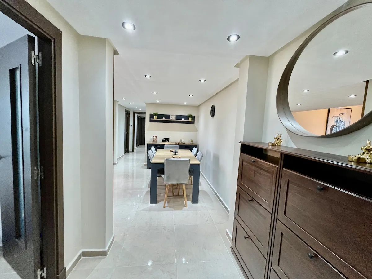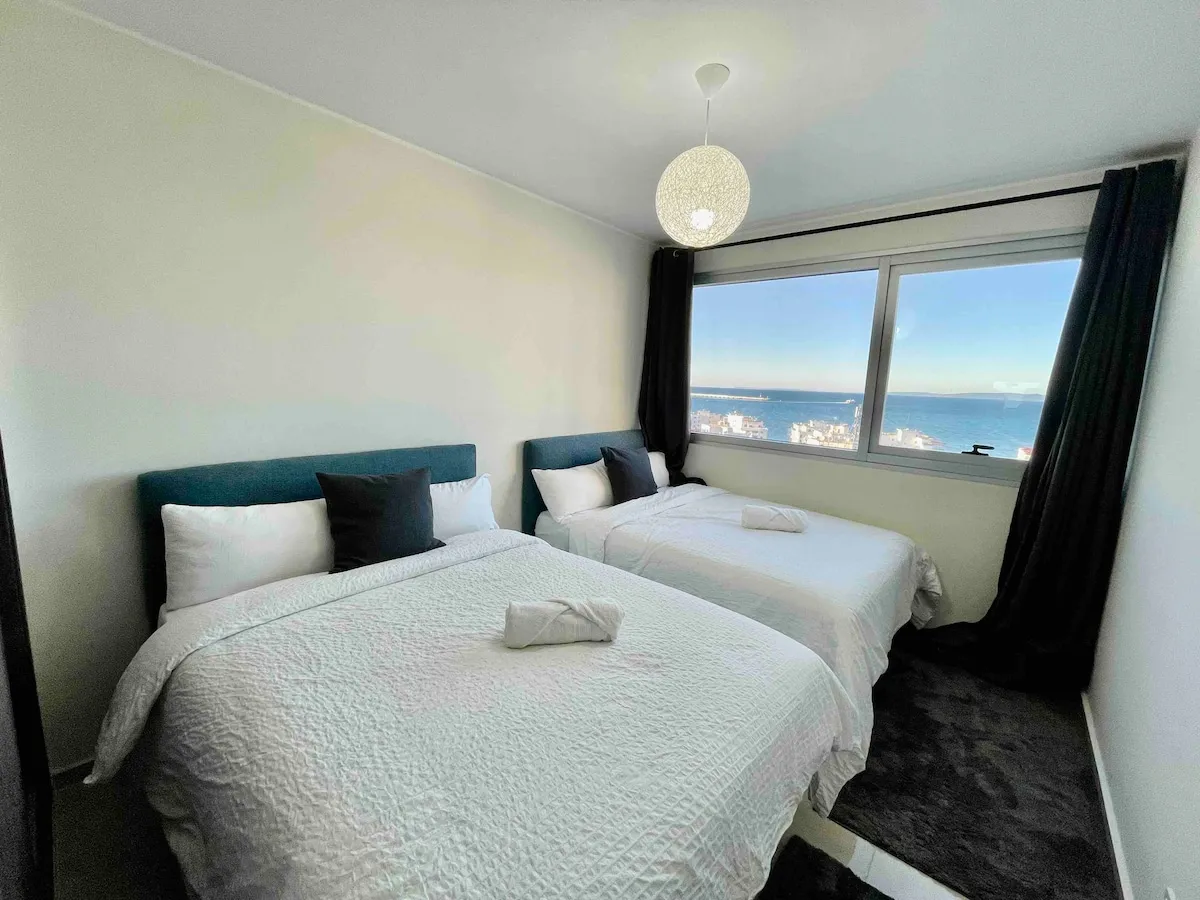 Au coeur du centre-ville et sur la fameuse corniche de Malabata, cet appartement bénéficie d’une vue à couper le souffle sur la mer Méditerranée et l’espagne! L’appartement dispose de tout les équipements nécessaires et se trouve à proximité de toutes les commodités: Mall Tanger City Center et Gare TGV (1min de marche), Restaurants, Bars, Magasins, Cafés, Marina, etc.