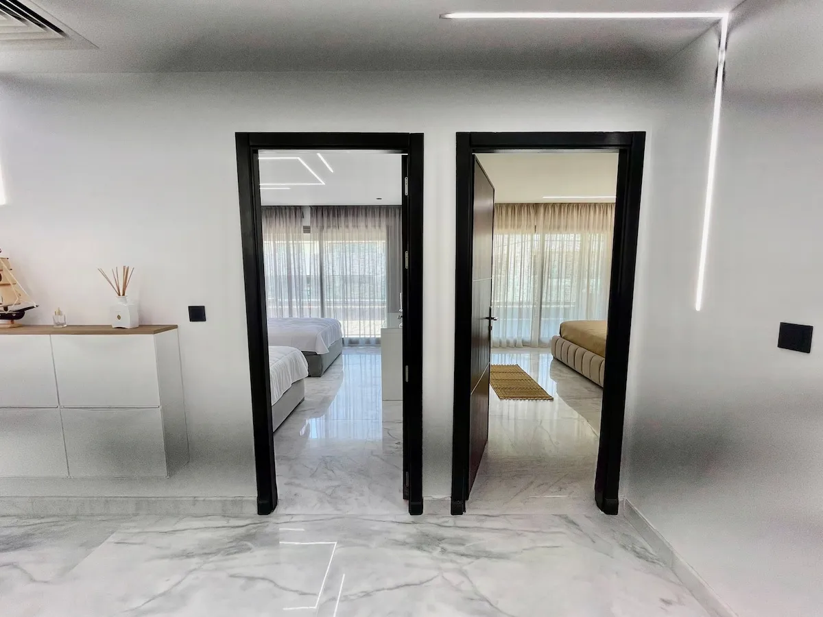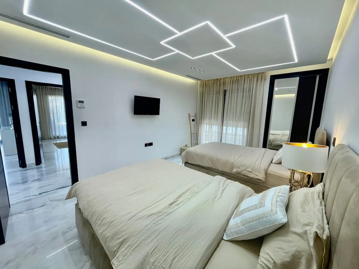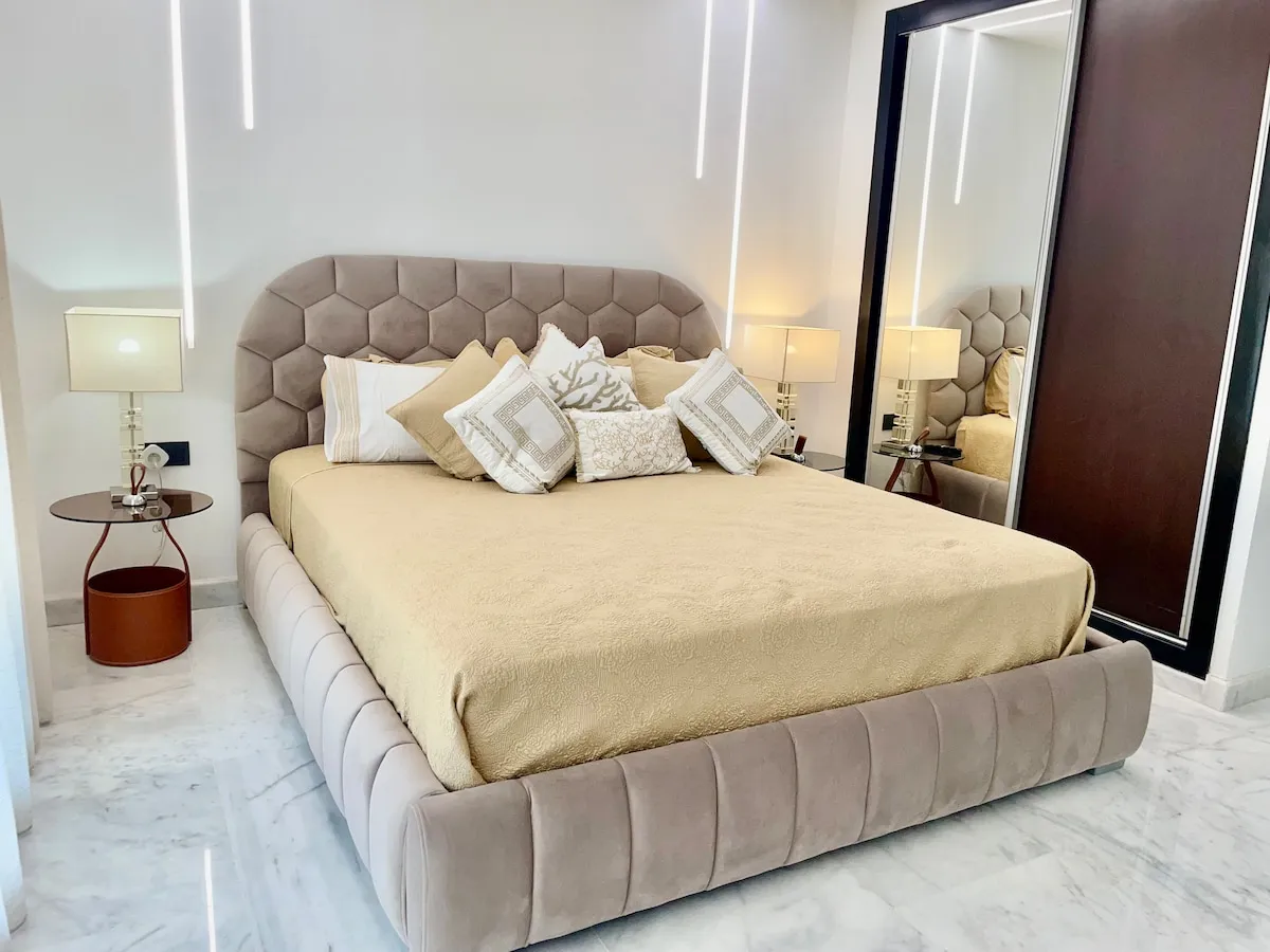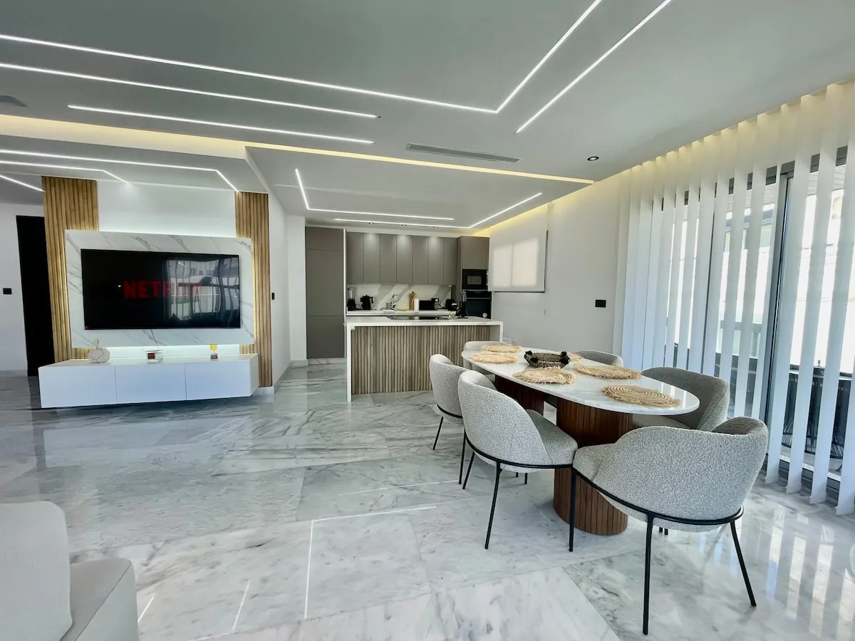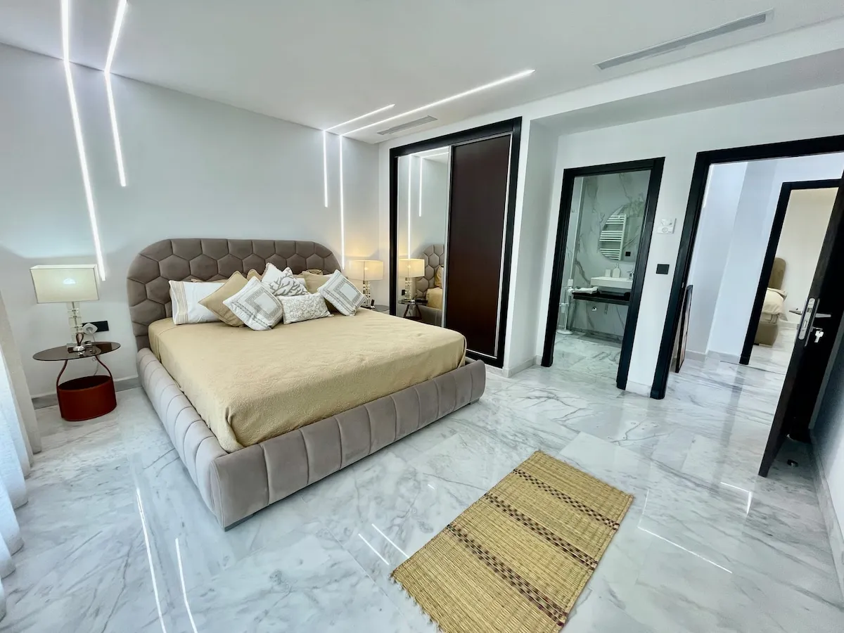 Découvrez ce Penthouse avec Jacuzzi ultra-moderne à thème blanc, doté de 3 chambres spacieuses et comfortables ainsi qu’une immense terrasse.