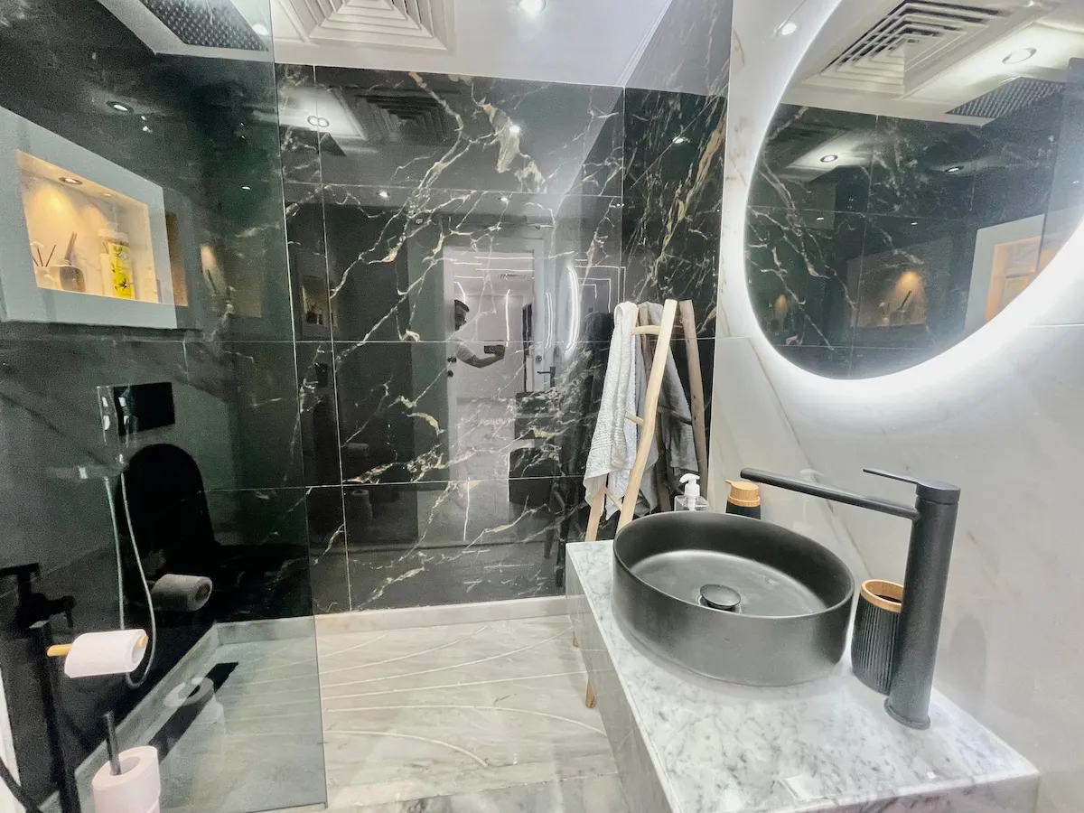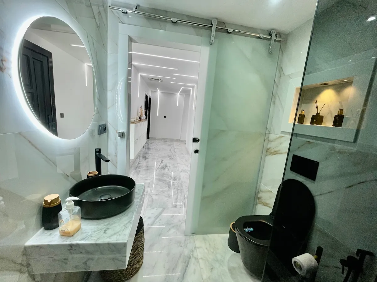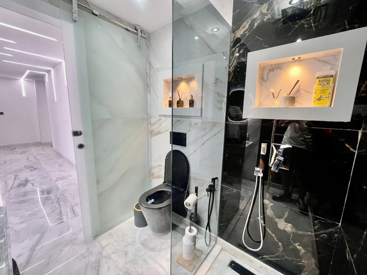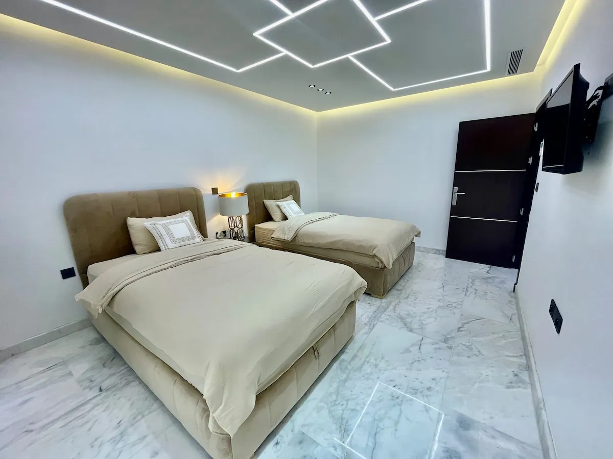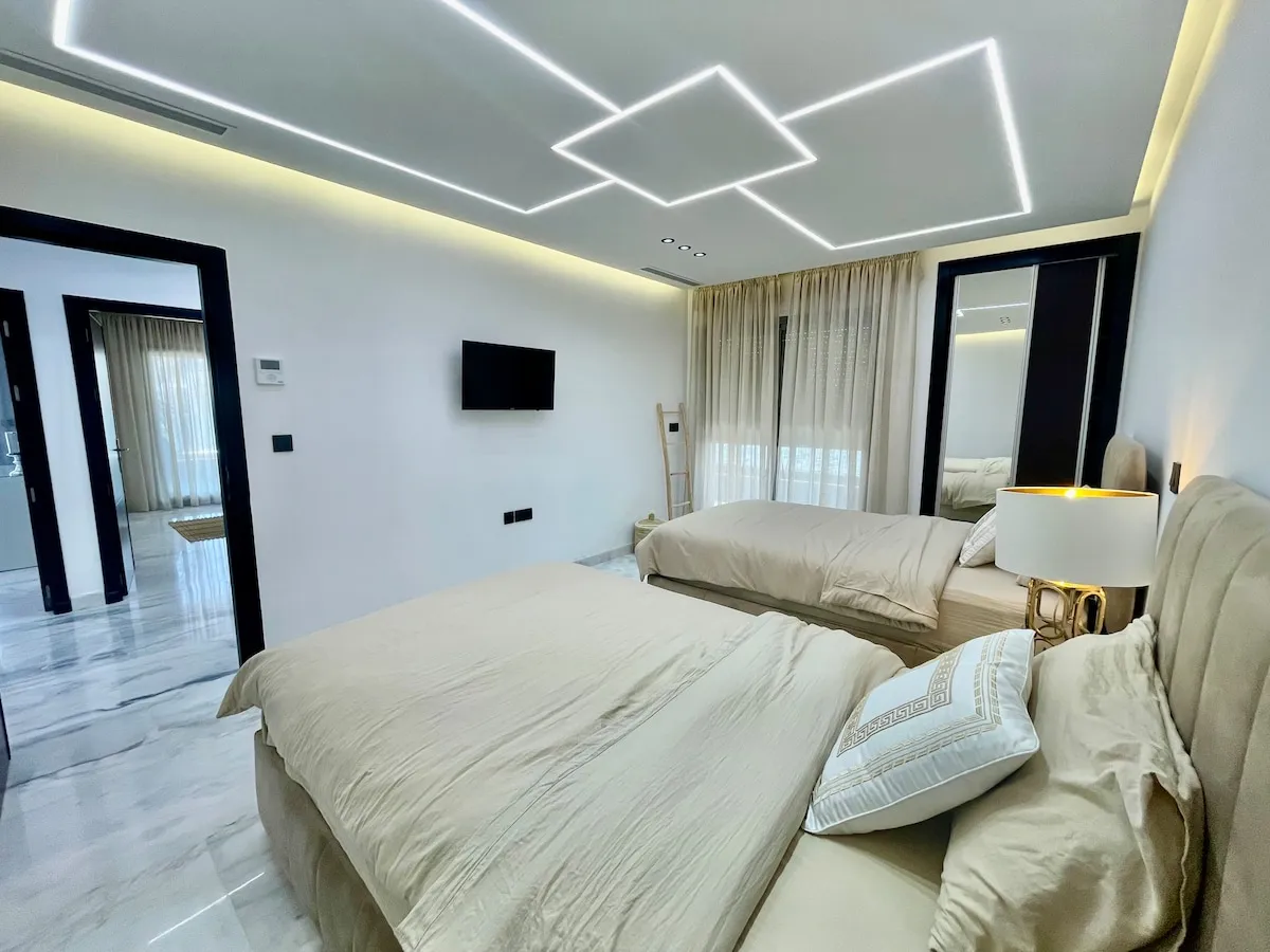 Découvrez ce Penthouse avec Jacuzzi ultra-moderne à thème blanc, doté de 3 chambres spacieuses et comfortables ainsi qu’une immense terrasse.