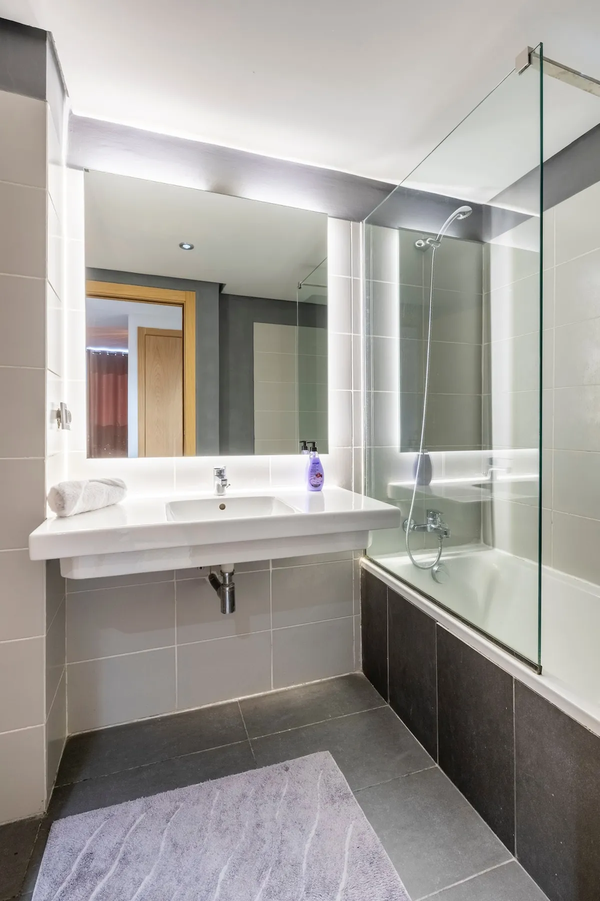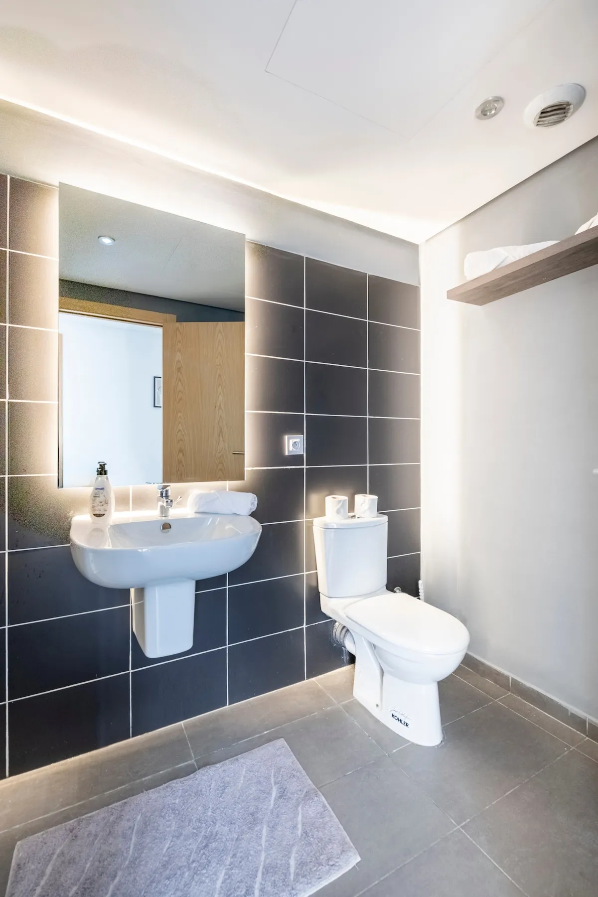 – Pièce principale: Un grand salon 6 places, un coin salle à manger ainsi qu’une deuxième salle de bain avec douche italienne.