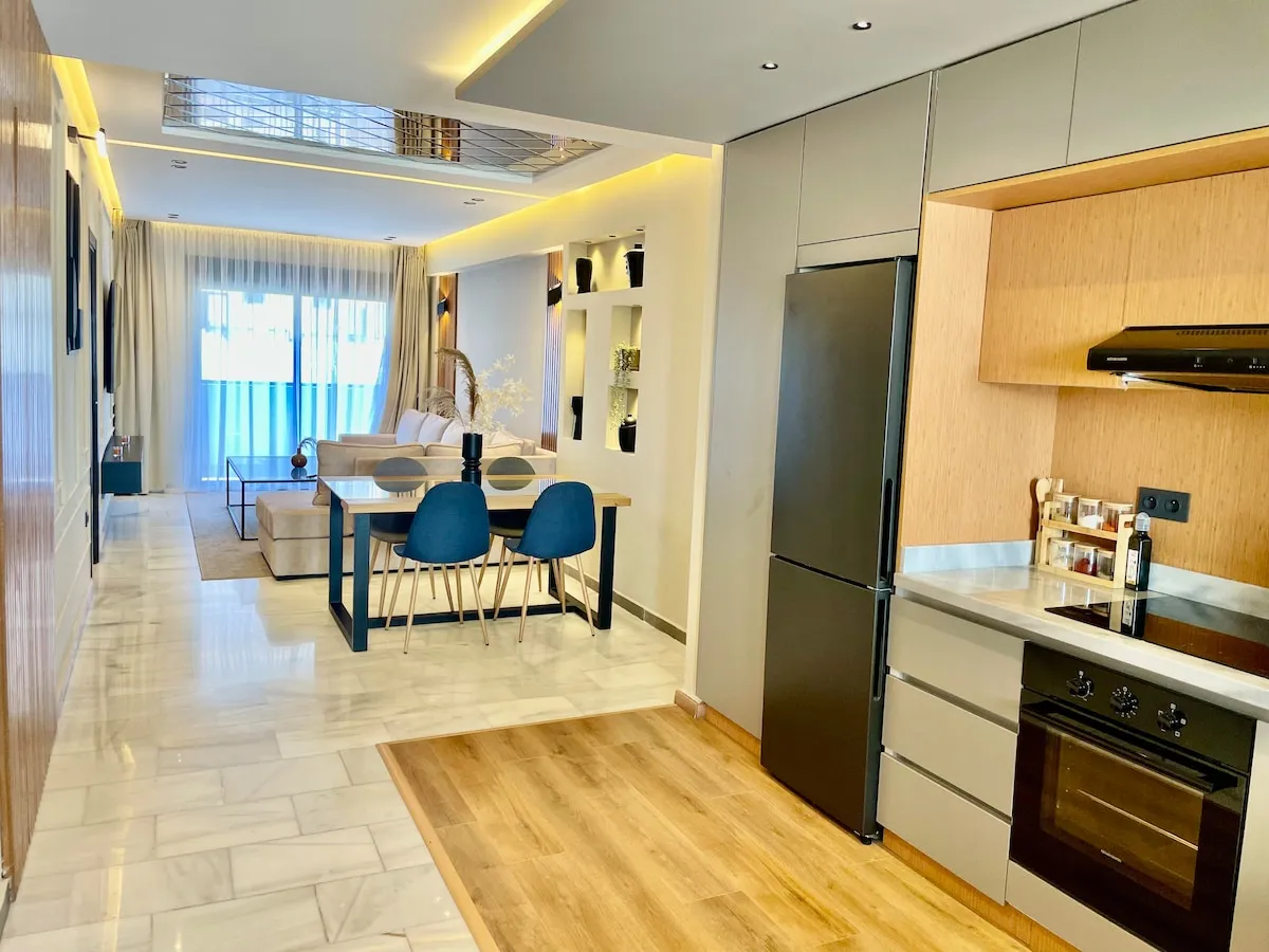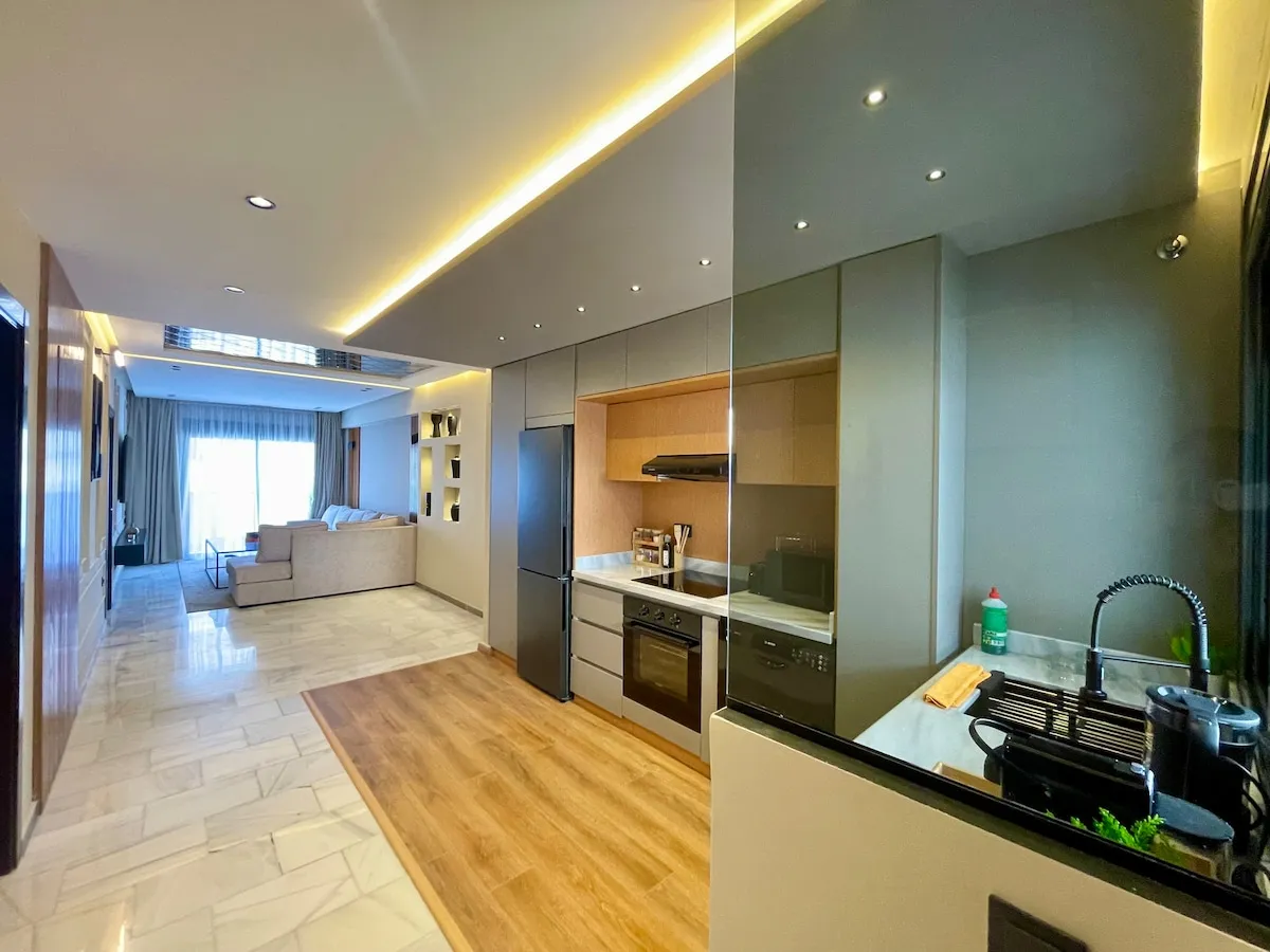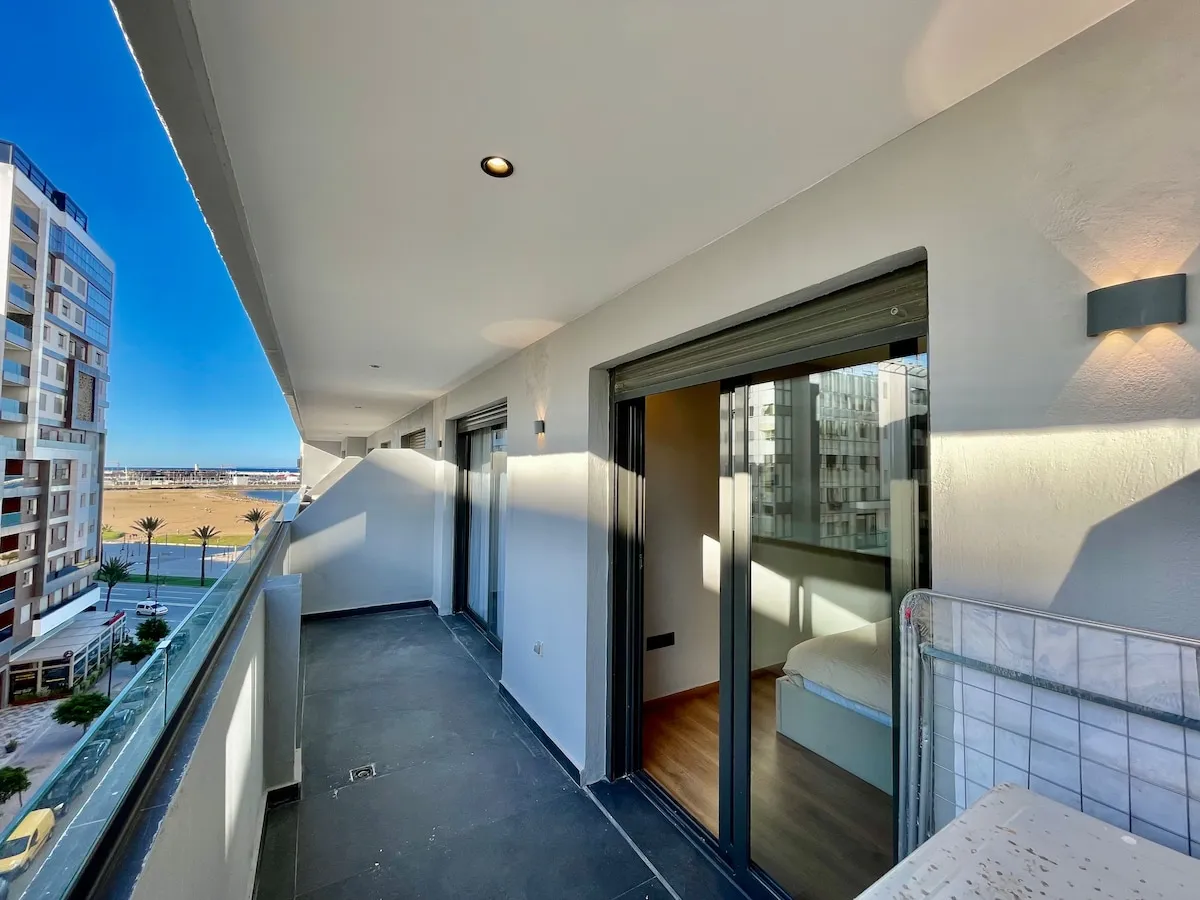Découvrez le luxe dans la prestigieuse corniche de Tanger. Cet élégant appartement de 2 chambres, avec des salles de bains opulentes, une cuisine sophistiquée et une terrasse avec vue sur la mer, offre le summum du confort. Idéalement situé au centre-ville, près de Marina Bay, à 10 minutes à pied de la gare TGV, du port et de l’ancienne médina. Entièrement équipé pour un séjour inoubliable, où le luxe et la commodité se rencontrent harmonieusement. Laissez-vous tenter par le style de vie exceptionnel de cette prestigieuse retraite.