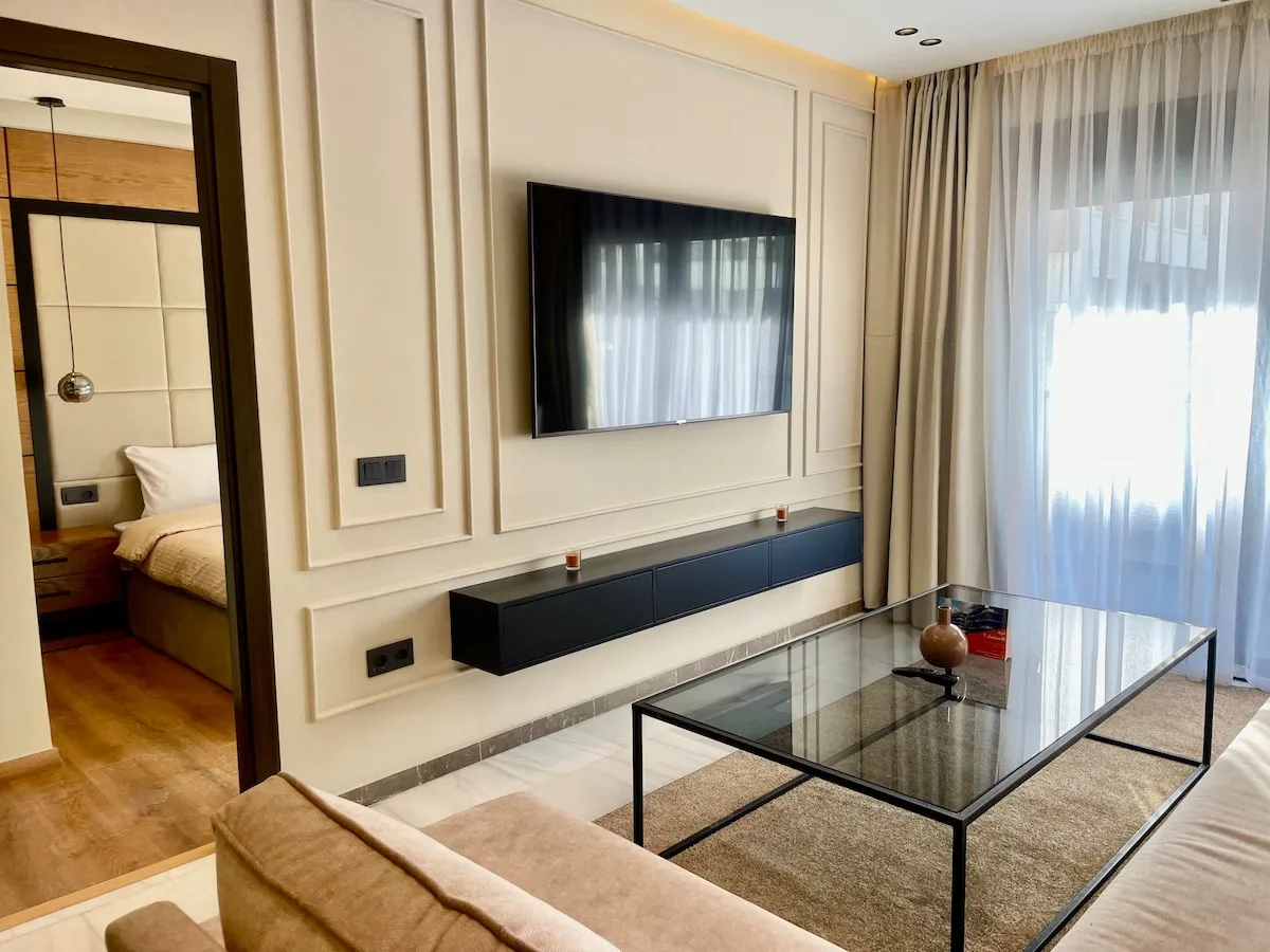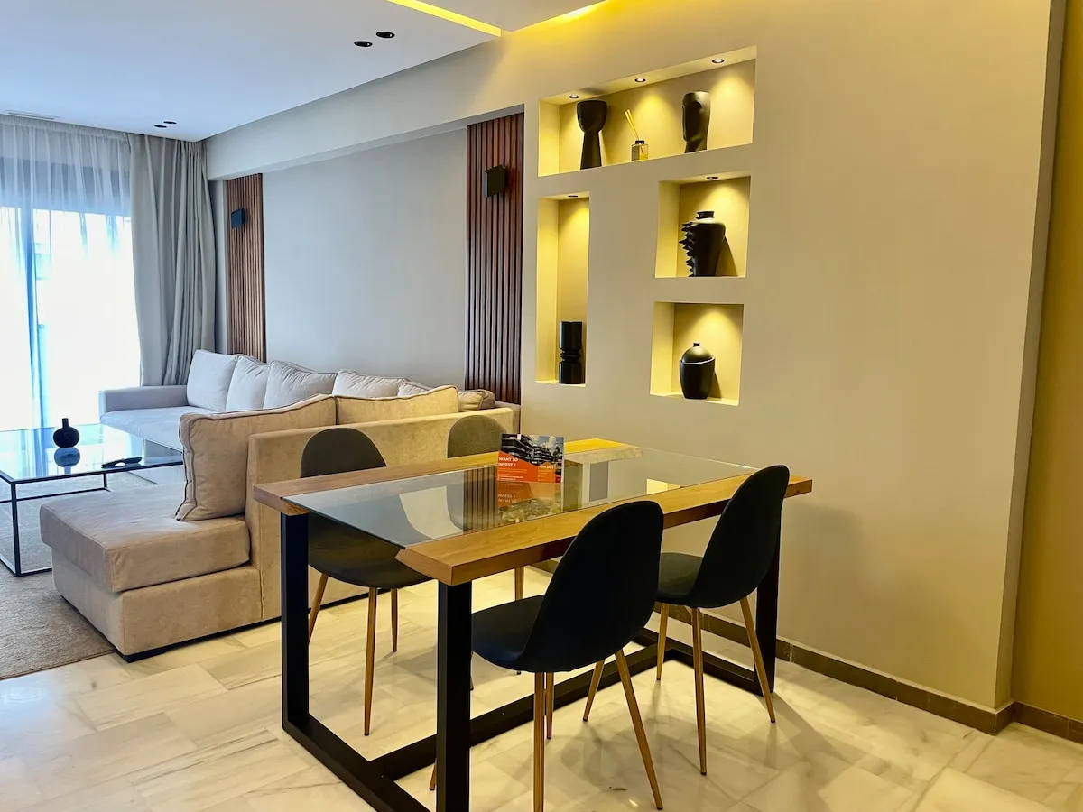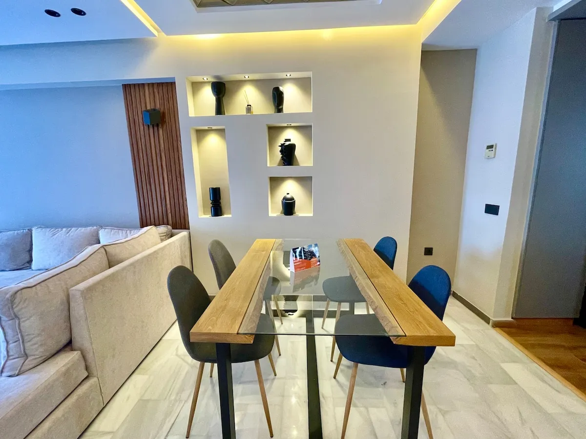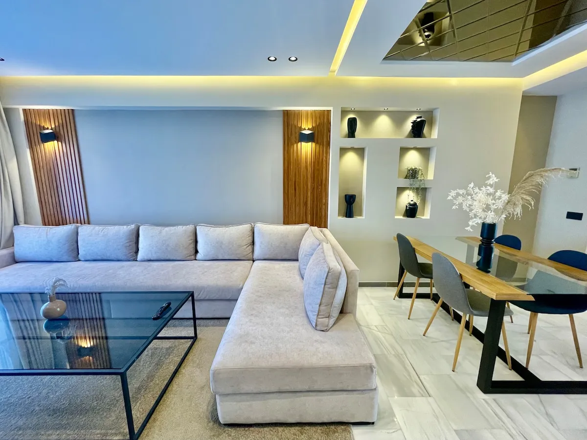 Découvrez le luxe dans la prestigieuse corniche de Tanger. Cet élégant appartement de 2 chambres, avec des salles de bains opulentes, une cuisine sophistiquée et une terrasse avec vue sur la mer, offre le summum du confort. Idéalement situé au centre-ville, près de Marina Bay, à 10 minutes à pied de la gare TGV, du port et de l’ancienne médina. Entièrement équipé pour un séjour inoubliable, où le luxe et la commodité se rencontrent harmonieusement. Laissez-vous tenter par le style de vie exceptionnel de cette prestigieuse retraite.
