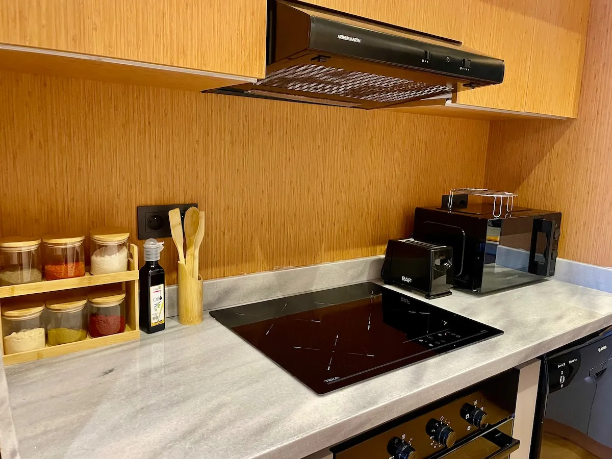 – Cuisine: Une cuisine américaine moderne et toute équipée.