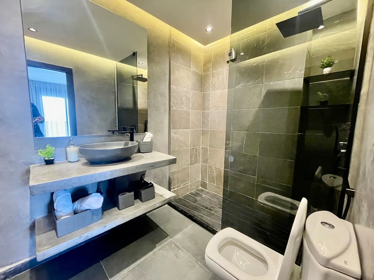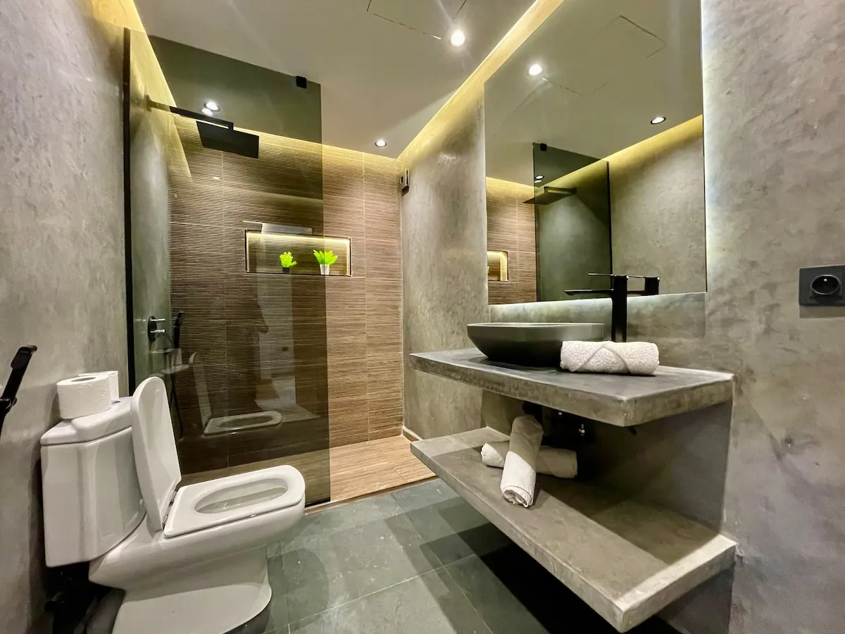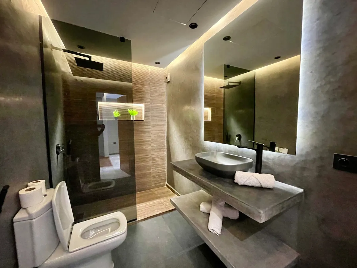 -Une suite avec un lit king size 2 places, et salle de bain avec douche italienne.