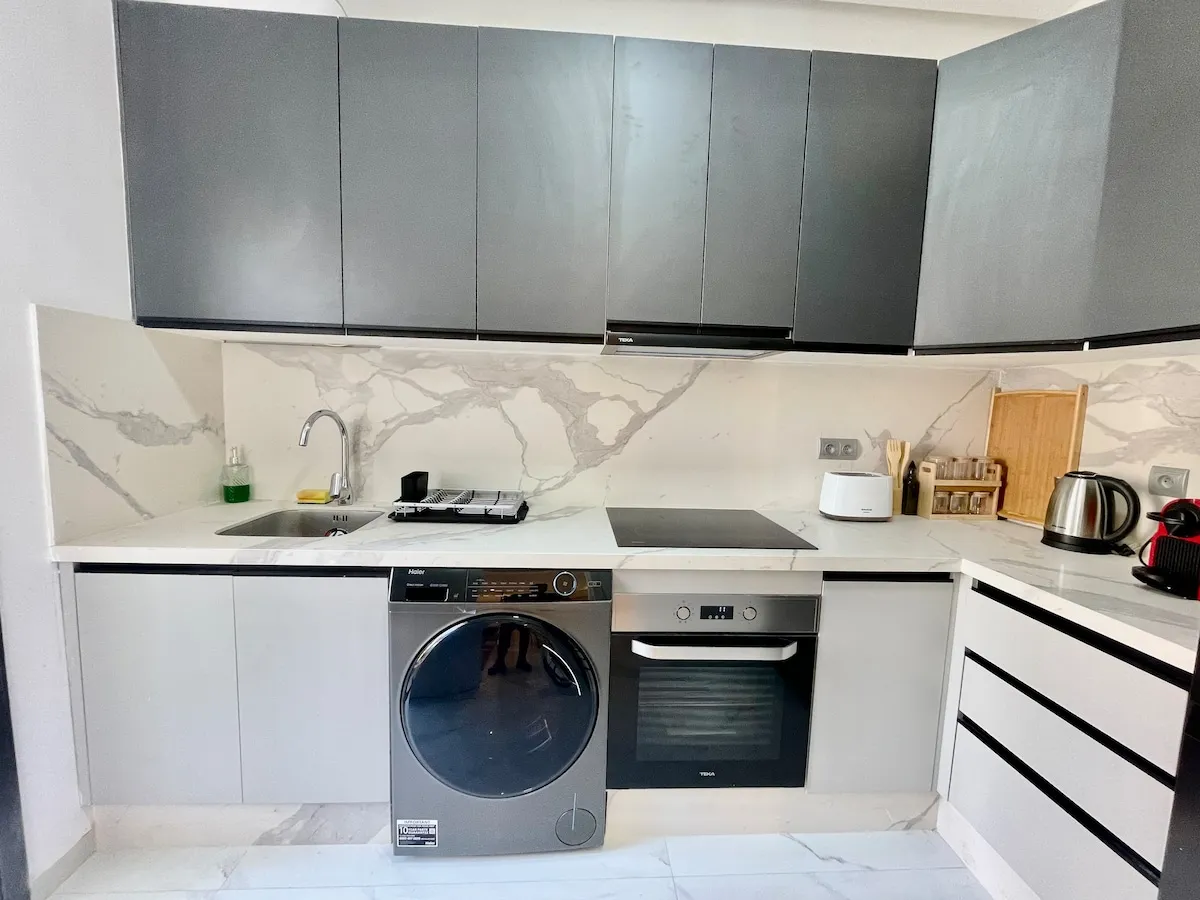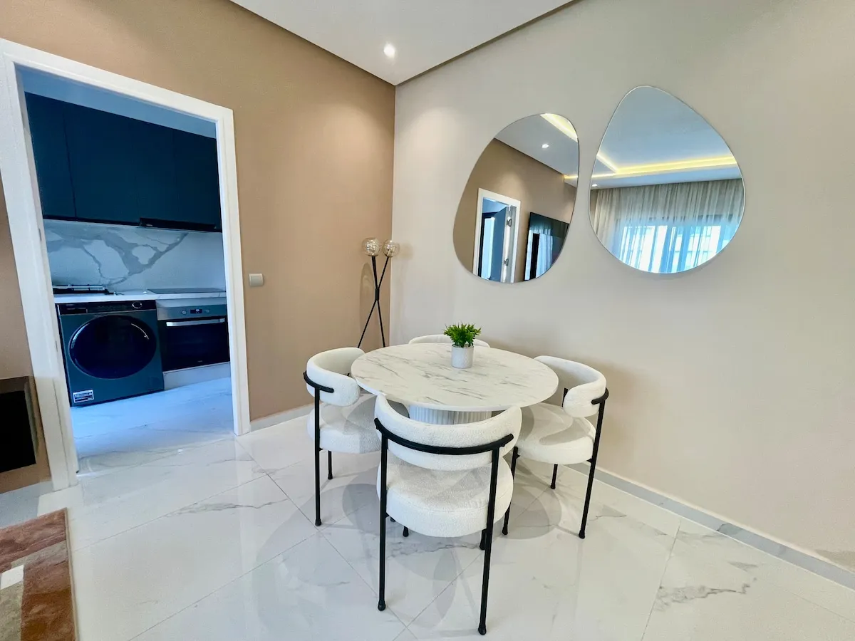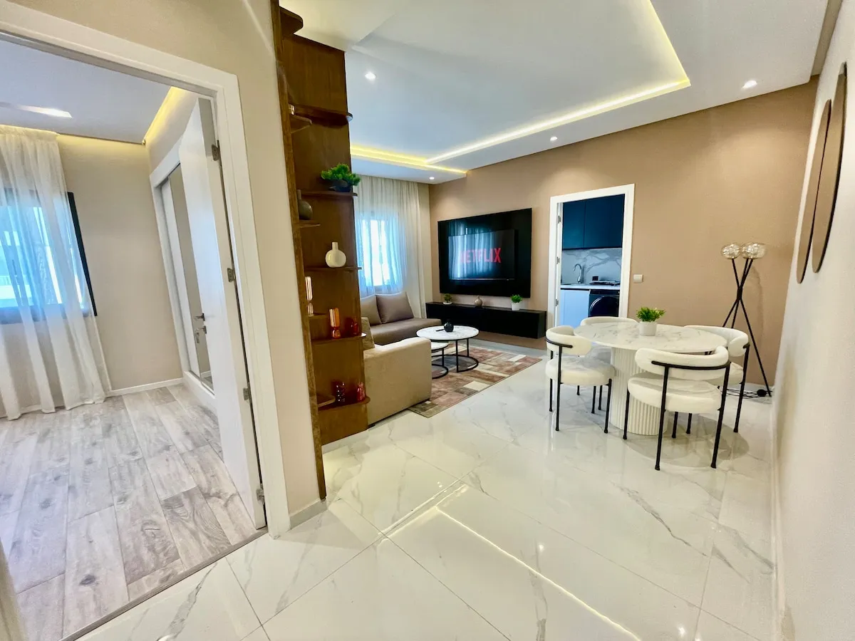 Niché sur la célèbre corniche de Tanger, cet appartement 1 chambre offre une décoration raffinée. Une suite/chambre avec dressing, un salon moderne et une cuisine chic créant un espace élégant et fonctionnel.