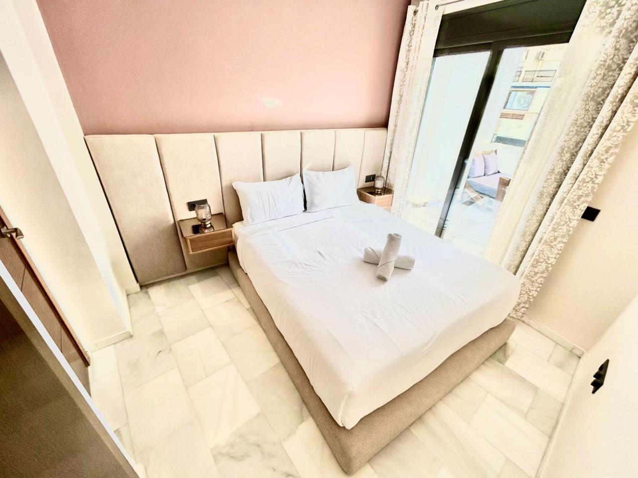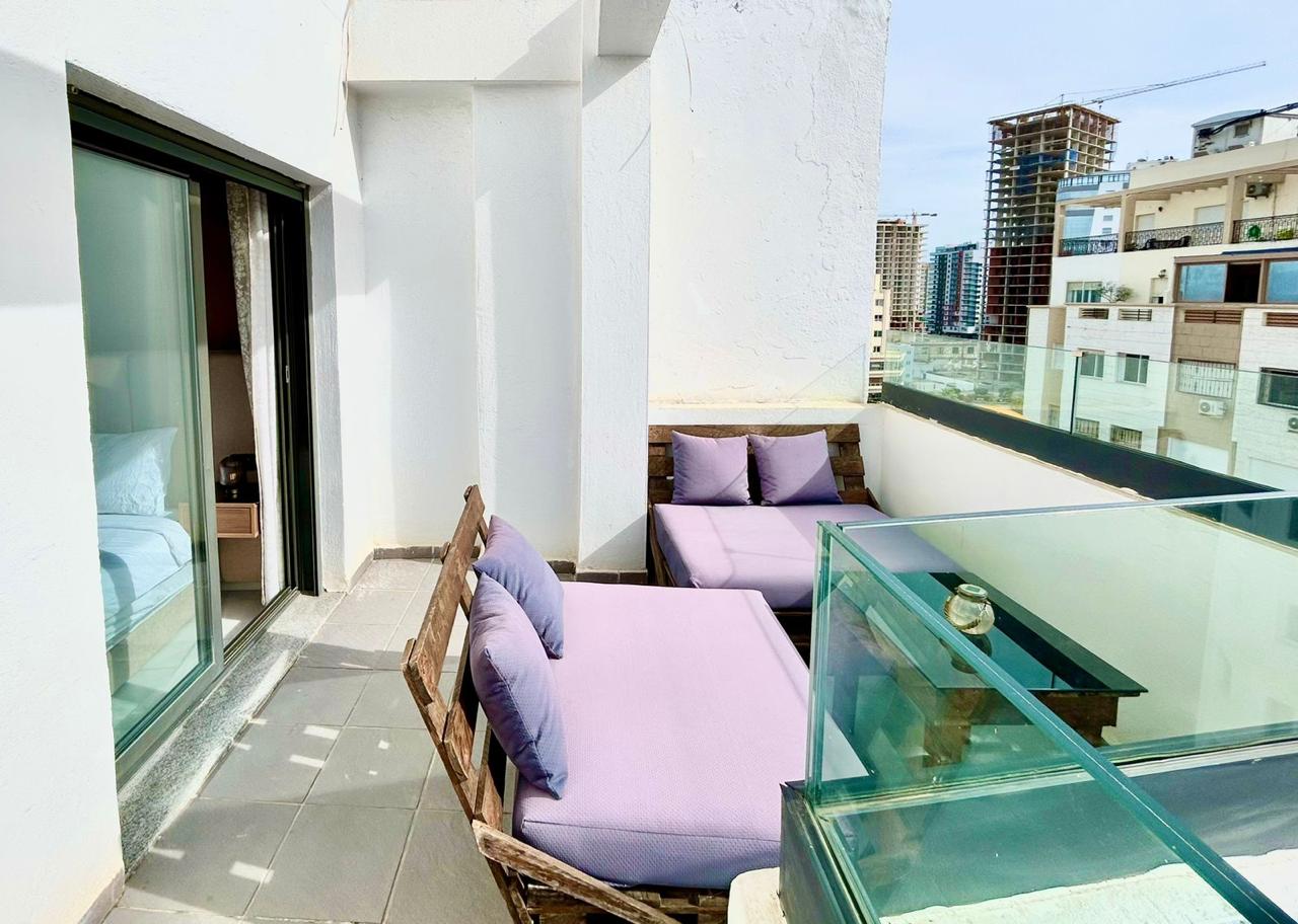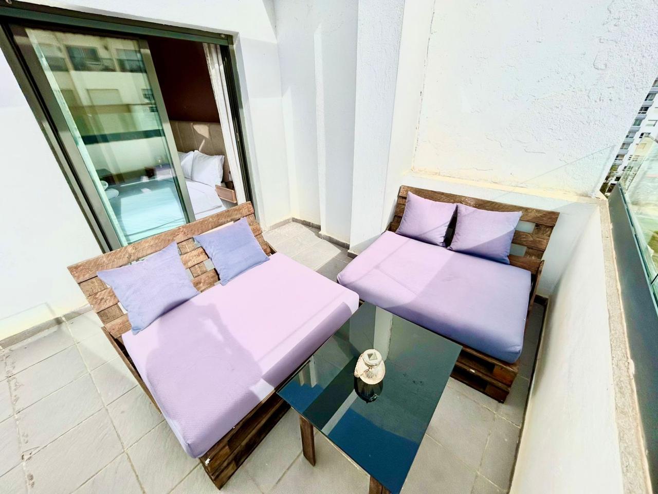 Situé sur la célèbre corniche de Tanger, cet appartement au style original dispose de 2 chambres, 2 salles de bain, d’une cuisine équipée, d’une terrasse meublée et d’une piscine dans la résidence. Idéalement situé au cœur du centre-ville, près de la Marina, à 10 minutes à pied de la gare TGV et du port, il est parfaitement équipé pour un séjour en famille.
