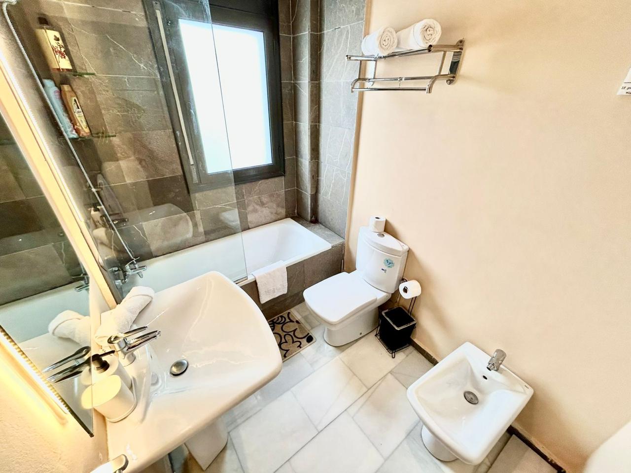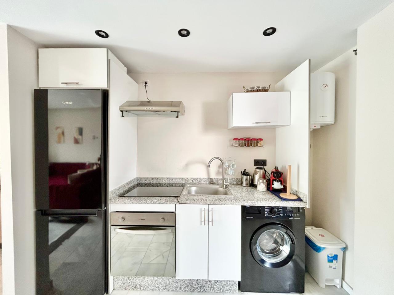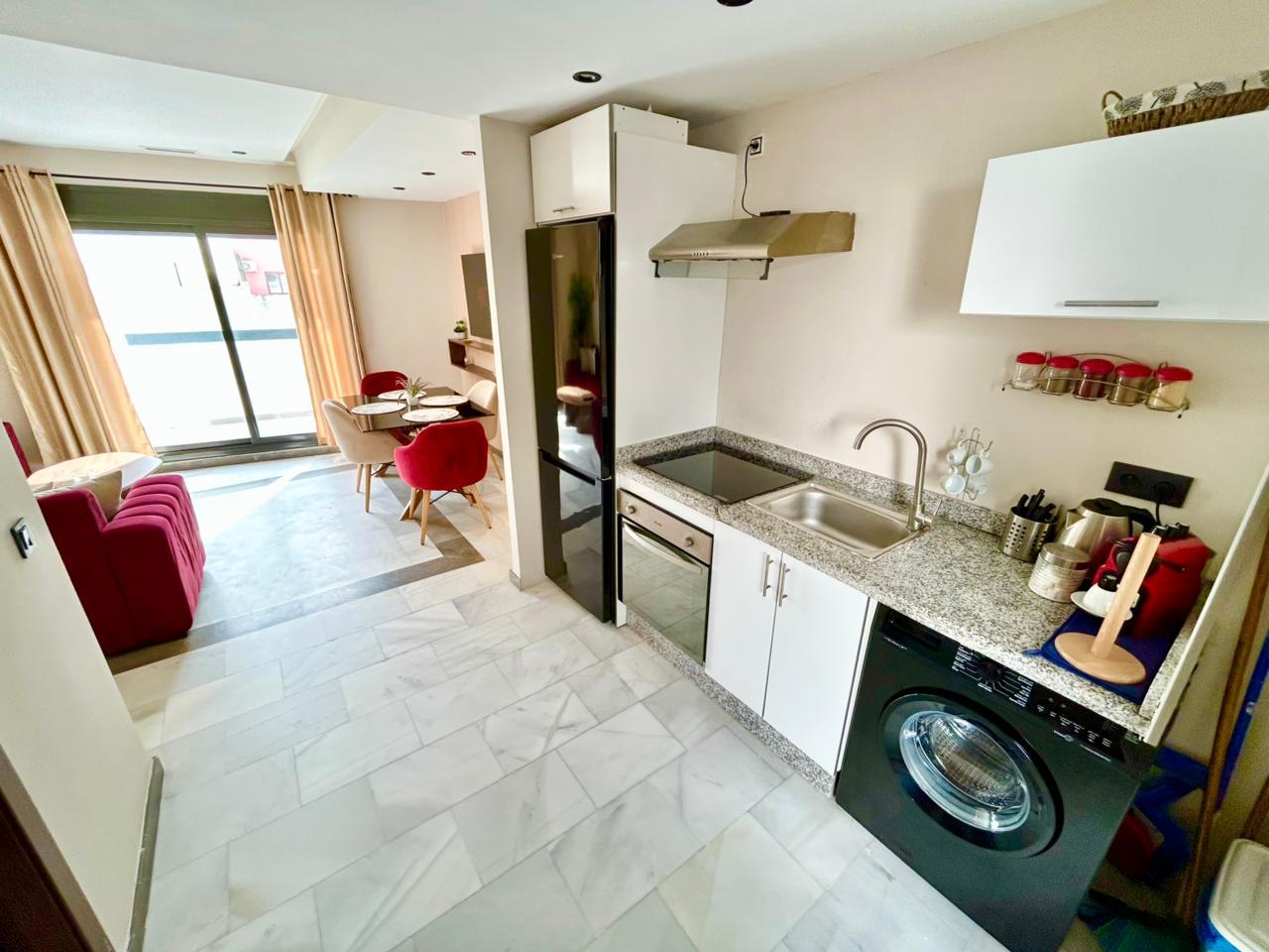 Situé sur la célèbre corniche de Tanger, cet appartement au style original dispose de 2 chambres, 2 salles de bain, d’une cuisine équipée, d’une terrasse meublée et d’une piscine dans la résidence. Idéalement situé au cœur du centre-ville, près de la Marina, à 10 minutes à pied de la gare TGV et du port, il est parfaitement équipé pour un séjour en famille.