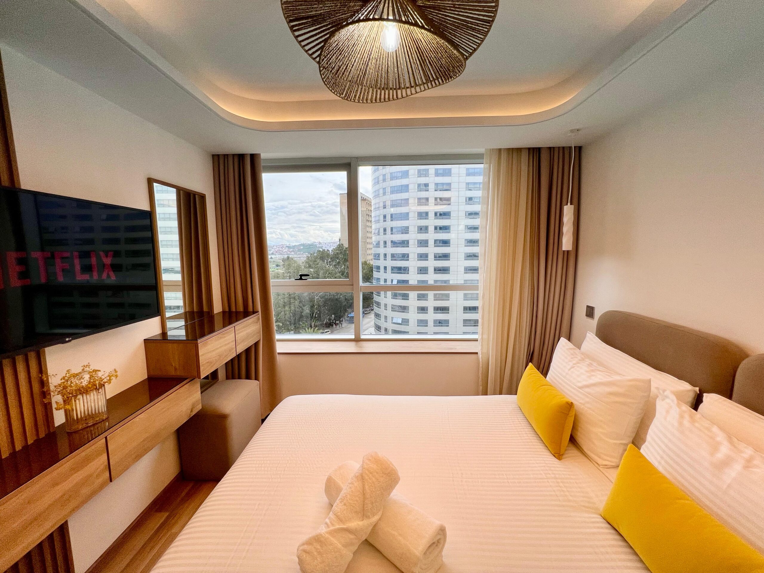 Idéalement situé dans la Résidence View Tower, il profite d’un emplacement premium, à deux pas de la gare TGV, du City Center Mall, de la corniche, ainsi que des meilleures tables et cafés de la ville.