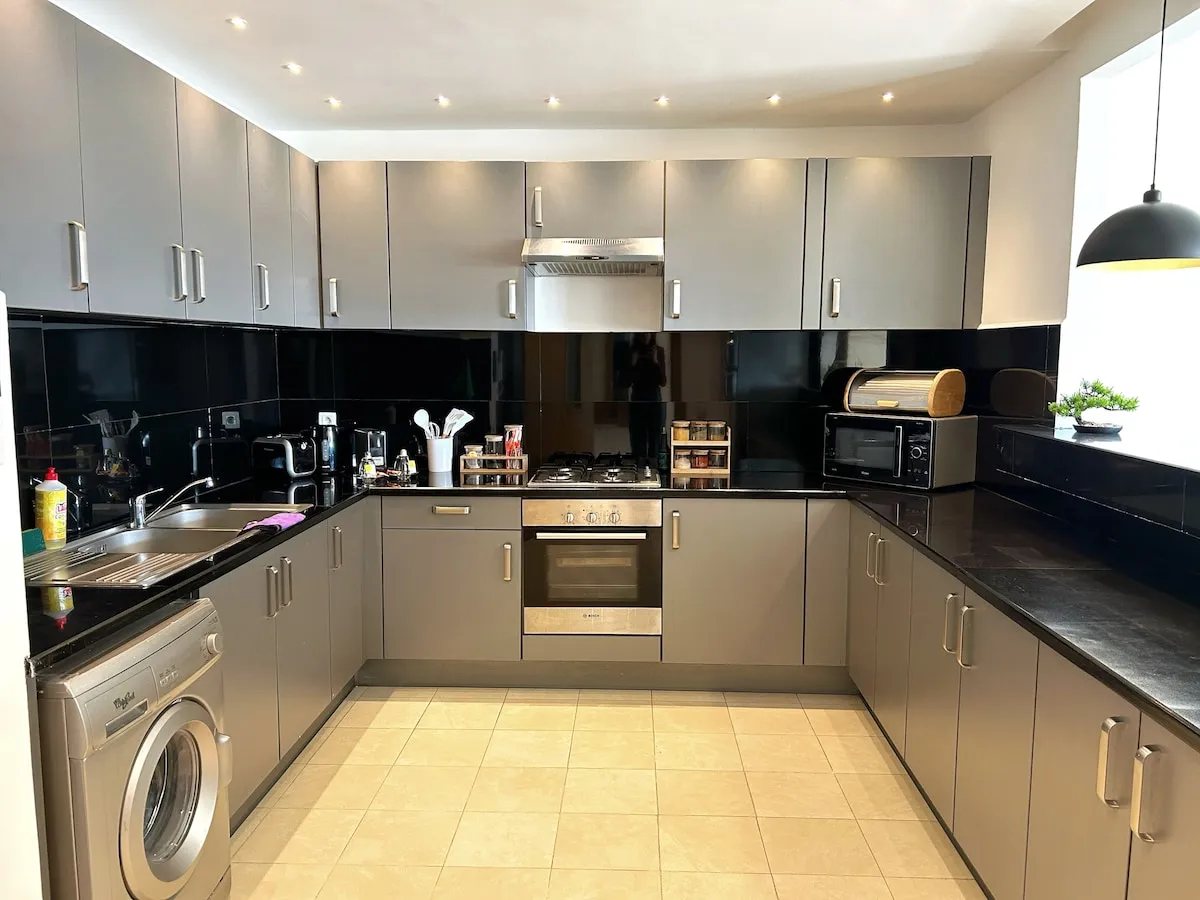 – Cuisine: Une grande cuisine avec comptoir-bar toute équipée.