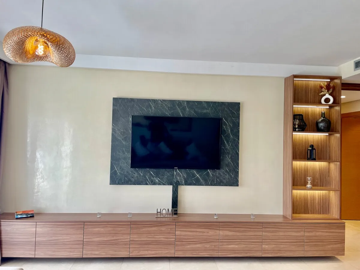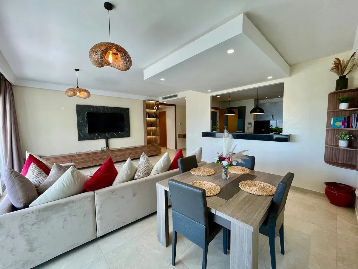 Niché au sein d’une résidence sécurisée donnant sur la majestueuse Baie de Tanger, cet appartement se distingue par son style moderne, sa terrasse spacieuse, et son exposition ensoleillée tout au long de la journée, vous offrant une vue panoramique sur les eaux scintillantes de la Méditerranée.